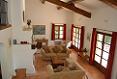 Moving your mouse pointer over the Floor Plan link provides an illustration of the layout of Maison Guy. The kitchen is fully equipped with fridge/freezer, microwave, dishwasher & washing machine and has a small eating area. An archway leads from the kitchen into the airy and spacious galleried living area. This 13 meter long room has separate sitting and dining areas and is tastefully yet simply furnished - large sofas are set around a feature fireplace, a round pedestal table seats eight comfortably and there is a stereo and iPod docking station plus a selection of books and games.