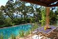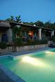 At one end there are steps up to the mezzanine offering a further 3 single beds plus an ieal area for children to play and relax in, with satellite television, Internet access and video/DVD player. Three sets of French doors open out onto a large covered terrace which runs the full length of the property above the pool and includes another dining area.